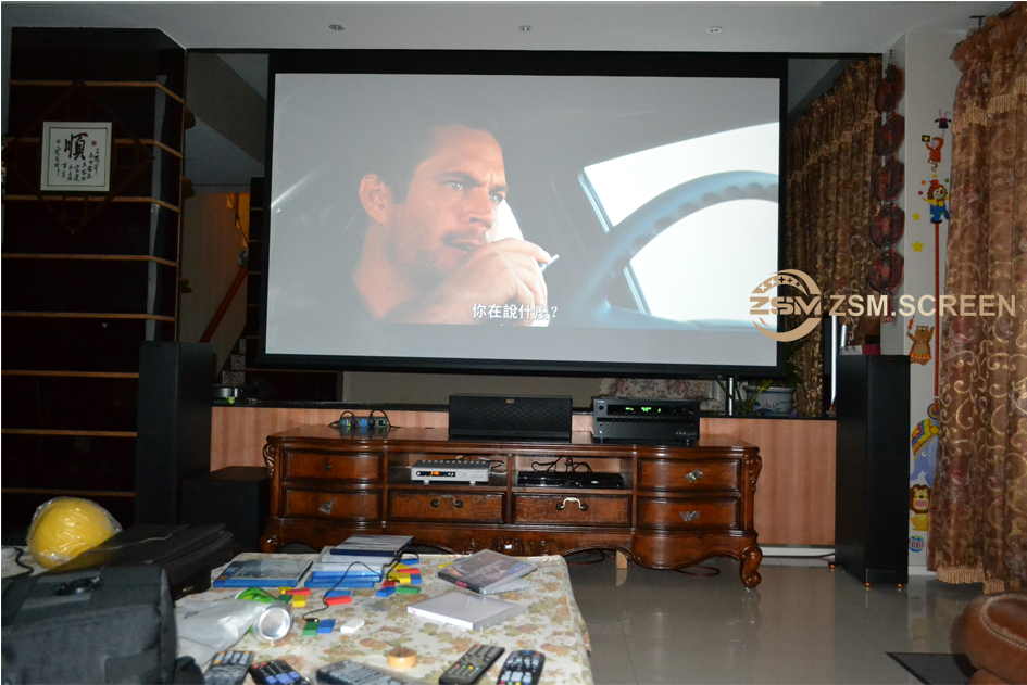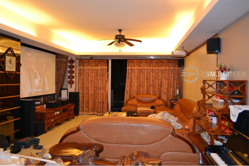 The floor is high, and the projector Epson TW9300 is installed low, which is convenient to adjust the picture effect with the lens displacement